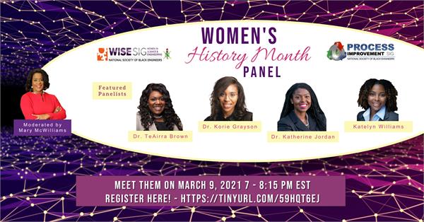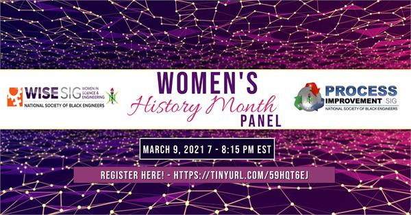 In celebration of Women's History Month, the Women in Science and Engineering (WiSE) and Process Improvement (PI) Special Interest Groups (SIGs) of the National Society of Black Engineers (NSBE) is hosting an industry panel of women engineers on what it means to be holistic as a woman in engineering.